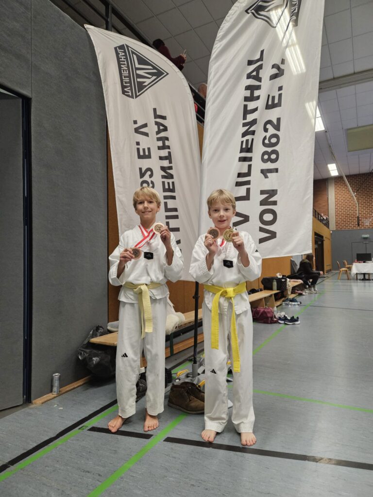 Ein besonderes Highlight für den TV Lilienthal waren die Auftritte unserer jüngsten Starter Niklas und Felix. Beide zeigten sowohl im Einzel als auch im Paarlauf beeindruckende Konzentration, saubere Technik und großen Kampfgeist. Trotz starker Konkurrenz durch ältere und erfahrenere Athleten bewiesen sie Nervenstärke und Durchhaltevermögen – eine großartige Leistung, auf die wir besonders stolz sind.