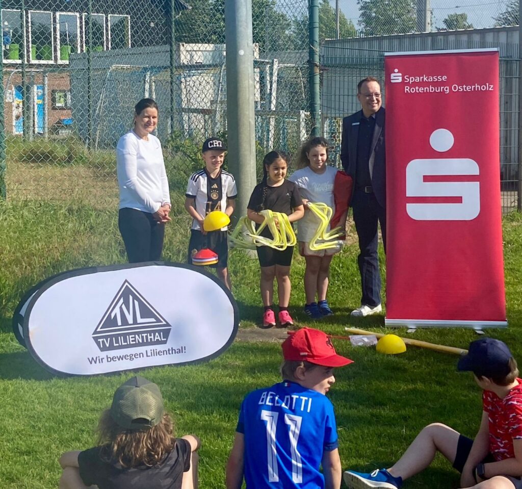 Das Projekt KiLa goes School des Niedersächsischen Leichtathletikverbands brachte den Stein ins Rollen. In dem Projekt wird das Engagement der Vereine, Grund- und Förderschulen bei der Durchführung von Bundesjugendspielen im neuen Format unterstützt und mit einem Materialpaket des Sportgeräte-Spezialisten HaeSt gefördert. Marc Thoden von der Sparkasse Rotenburg Osterholz übergab am Freitag symbolisch Svea Hammerström das vielfältige Sportmaterialpaket, welches bereits im Rahmen der Veranstaltung eingesetzt werden konnte. ❤️lichen Dank dafür!
