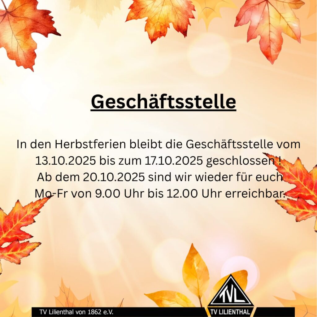 Unsere Geschäftsstelle ist vom 13.10. bis zum 17.10.2025 geschlossen!